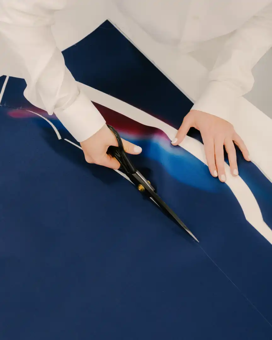 Knowing that the athletes could be standing in the sun for more than eight hours during the opening ceremony, Le Goff and her atelier’s number-one priority was to ensure Team France’s comfort. It’s why they chose breathable cotton-silk and wool fabrics with added stretch, and why they will spend the days in the lead-up to each ceremony making alterations to fit all 1,500 suits on every athlete individually. “We had to produce many of the pieces before knowing who would make it to the ceremony,” she says. The impeccably fit finished garments are a testament to the craft know-how of Berluti, one of the few houses in Paris still offering bespoke services for men’s shoes at its Rue Marbeuf atelier, as well as tailoring services at its Rue des Sèvres atelier on the Left Bank. “We want to show the house’s exceptional savoir-faire in ready-to-wear but also shoes, which is where the journey started,” adds Le Goff.