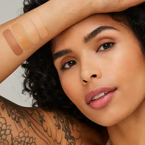Choose the PureMatch Liquid Concealer shade that best suits your skin tone to conceal imperfections, even out skin tone and mask discolorations. Use the tip of the applicator for targeted application, such as concealing blemishes or minor discolorations. For larger areas you want to conceal, lay the applicator flat and apply a swipe of product to the face. For a more precise application, use the Camouflage Brush to blend. To camouflage the whole thing, use the Blending/Contouring Brush to blend and camouflage.